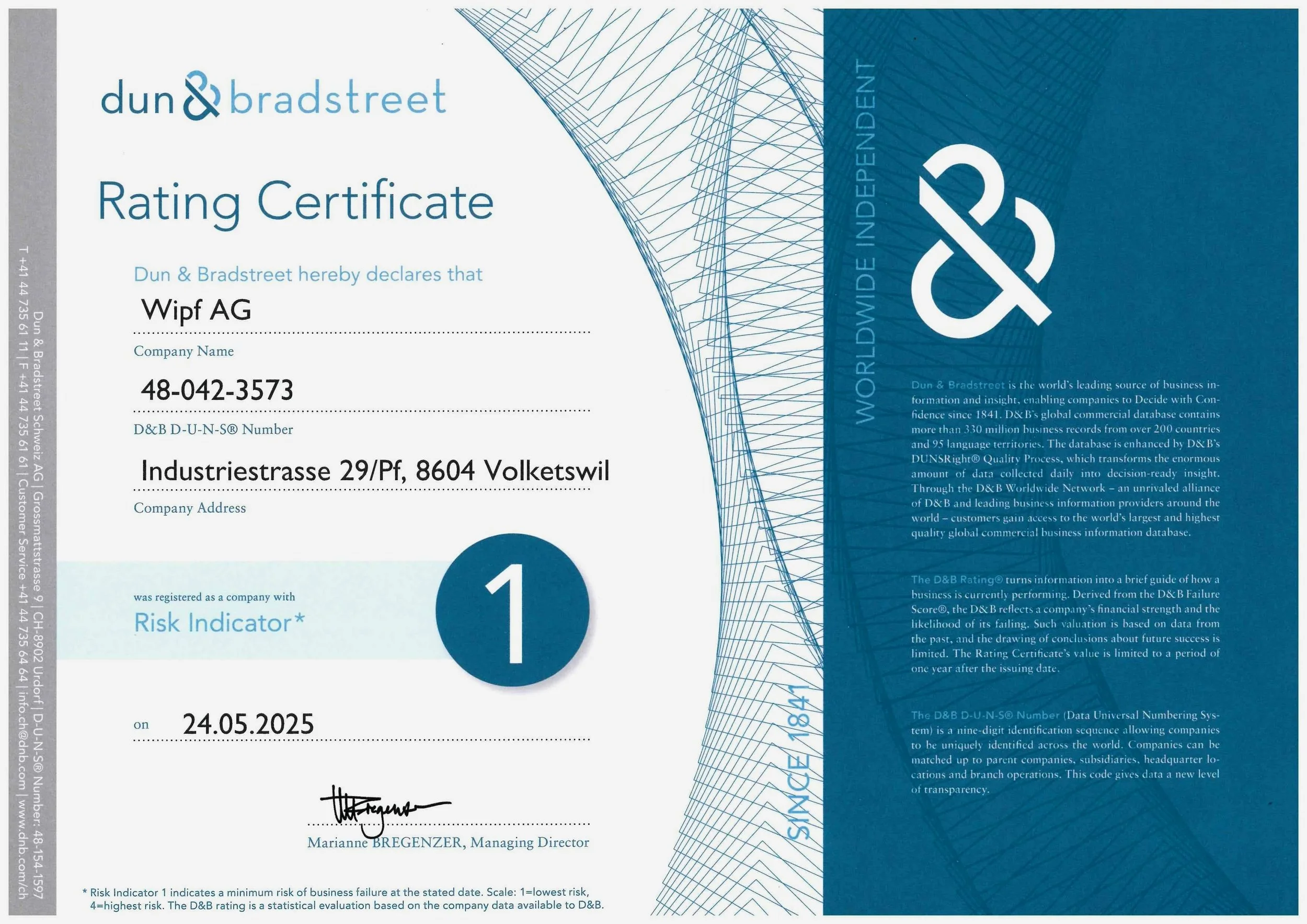 Rating Zertifikat Dun & Bradstreet Schweiz AG