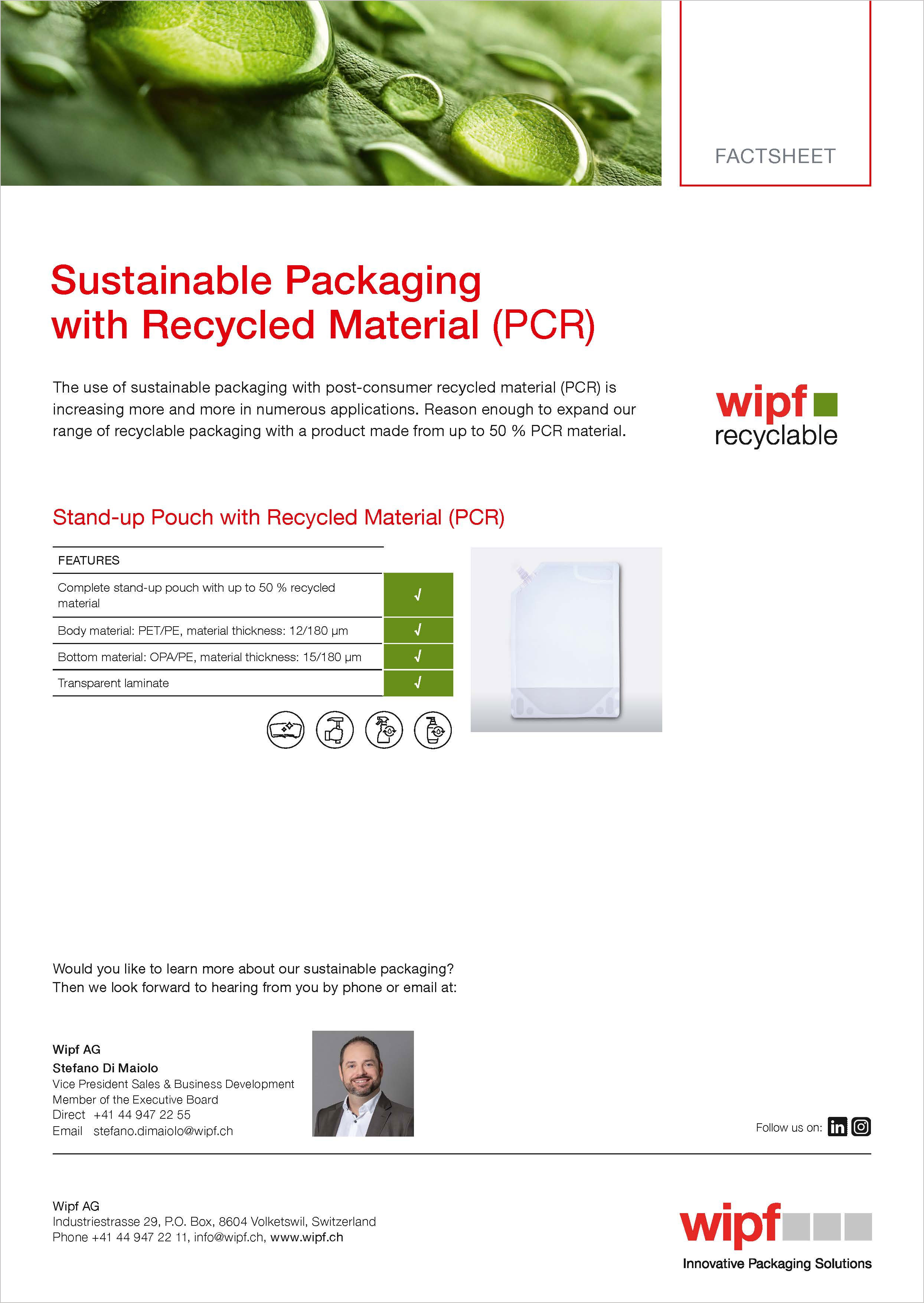 Factsheet sustainable packaging made with recycled material (PCR)